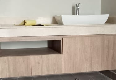 Fabricación e instalación de canceles de vidrio templado y muebles de baño con acabados de lujo. Soluciones que transforman tu baño en un espacio de confort y orden.