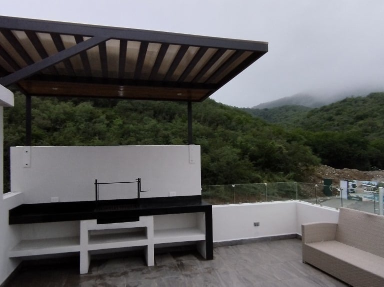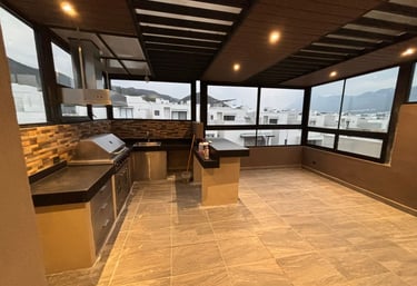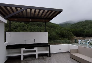 Una Terraza cerrada lleva el confort del interior al exterior. Estos trabajos de herrería integral con cancelería de vidrio templado o crudo, permiten un uso total del área social durante cualquier época del año. Ideal para áreas de asador con integración de campanas de acero inoxidable y plafones con iluminación LED, creando una atmósfera de lujo funcional.